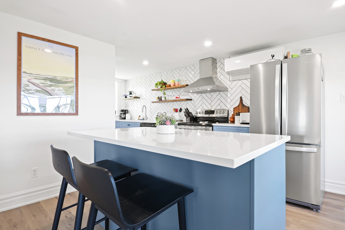 Unwind in this newly built main level suite overlooking the Charlottetown Harbour and the picturesque Victoria Park and just a short stroll to downtown shops & restaurants. Modern architecture at its finest, this loft has spared no expense. Floor to ceiling windows look out to sailboats and sunsets. Appointed with the luxury traveller in mind, this home is equipped with high end appliances, marble countertops, luxury linens and a king size bed for a truly restful sleep and stay. License #4000033