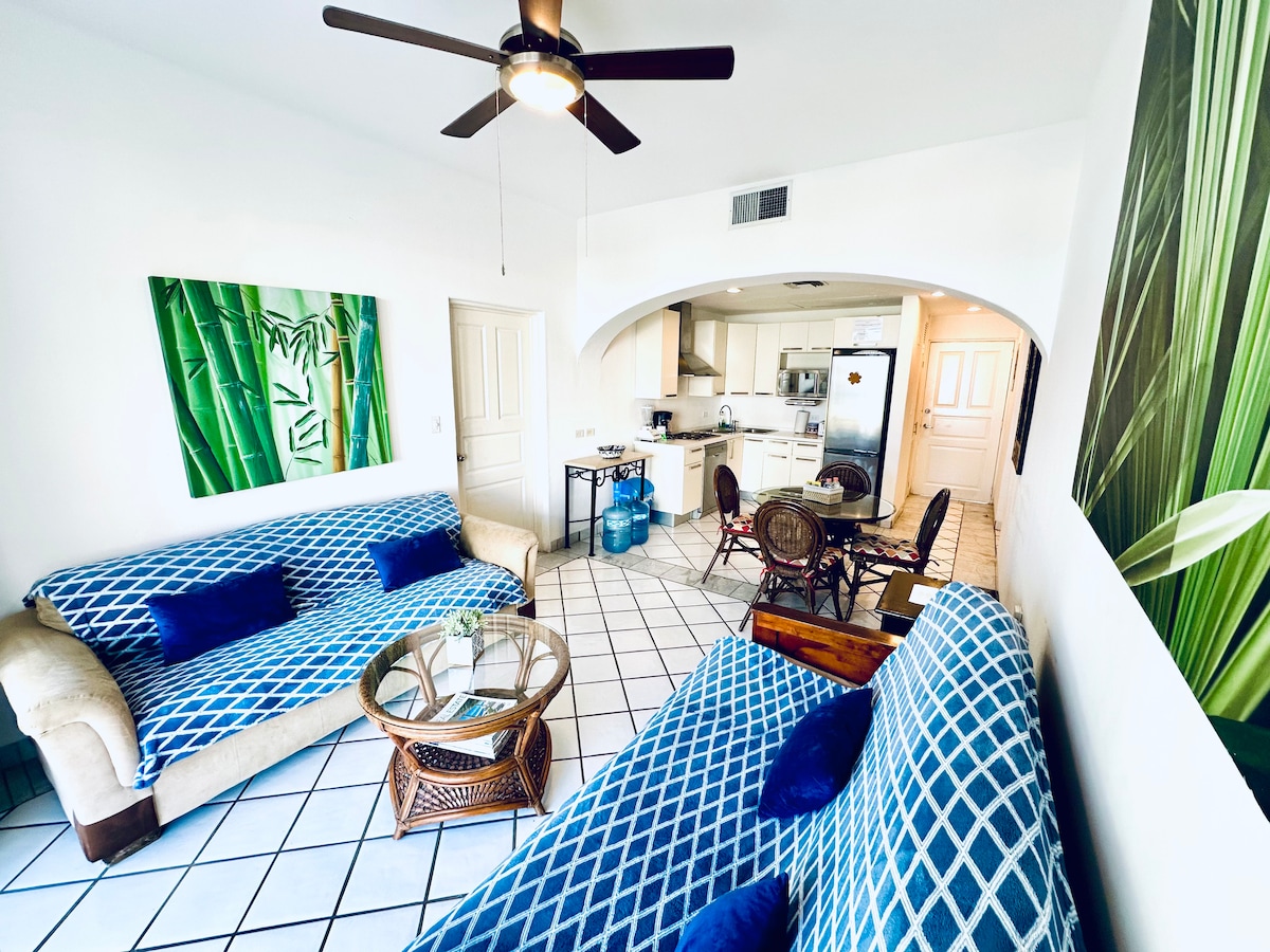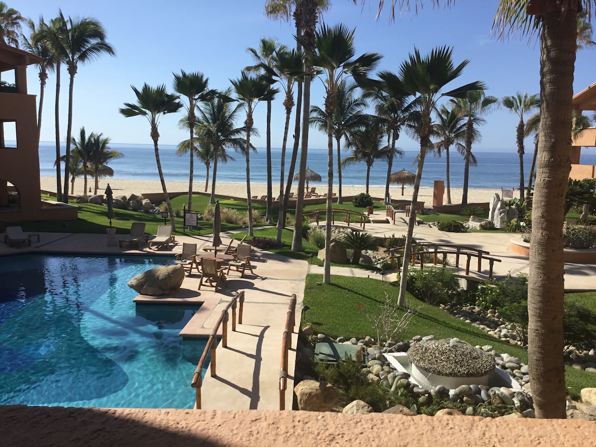¡Quédate en la playa en San José del Cabo! A pocos pasos de la arena, nuestro condominio de surf recientemente renovado ubicado dentro de la propiedad llamada "Las Olas" tiene vistas al resplandeciente mar de Cortés. ENVÍAME UN MENSAJE antes DE reservar estadías entre EL 1 DE agosto Y EL 15 DE octubre. Este es el período anual de tiempo de cada año en el que nuestra asociación de propietarios permite remodelaciones y reparaciones en los condominios de nuestra propiedad. Podría haber algo de ruido de lunes a viernes durante las horas de oficina. No se realizará ningún trabajo en nuestro condominio.