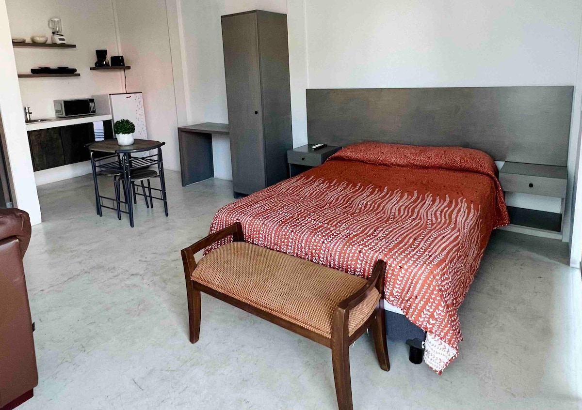 Estudio en Cabo San Lucas cerca del centro, la playa y la vida nocturna. Tiene baño privado y cocina equipada, con ollas, sartenes y demás artículos esenciales para cocinar. A solo 10 minutos a pie del centro de Cabo San Lucas, con bares, cafeterías, restaurantes y centros comerciales, además de tiendas de conveniencia, lavanderías, panaderías, farmacias, paradas de autobús y tortillerías. ¡Todo a poca distancia!