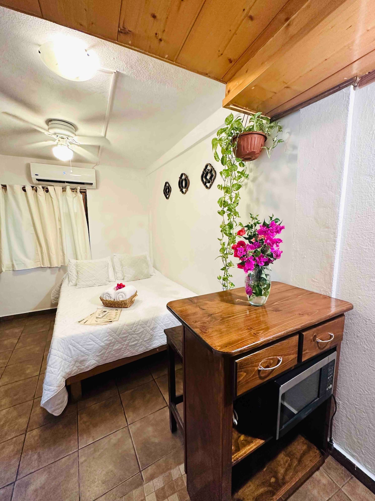 ✨ Acogedor estudio en planta baja (PEQUEÑO 12 m2) en un hermoso jardín tropical con más de 40 árboles frutales. Ubicado en el corazón de Cabo! Tiendas, restaurantes y vida nocturna a unos pasos! 5 min. a pie de la marina y 15 min. a pie de la playa 🏝️ ✅ Colchón memory foam y cortinas opacas para descanso ✅ Estacionamiento privado GRATUITO ✅ Baño privado con amenities ✅ Cocina privada con electrodomésticos ✅ Café y té de cortesía ✅ TV con Netflix y YouTube ✅ Caja fuerte en la habitación