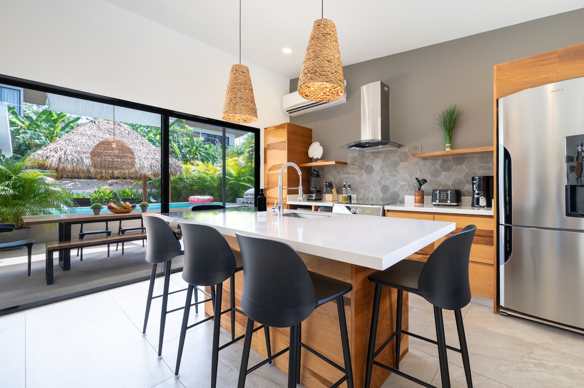 Somos una villa boutique familiar en el corazón de Tamarindo, cuidadosamente diseñada para unas vacaciones perfectas. Nuestro oasis tropical combina un diseño moderno de inspiración nórdica con un ambiente tranquilo. Los techos altos, la luz natural y las líneas limpias crean una sensación de amplitud. La madera, el hormigón y las paredes blancas aportan una elegancia atemporal, y los jardines crean un entorno tranquilo y natural. ¡Tu experiencia Pura Vida perfecta!
