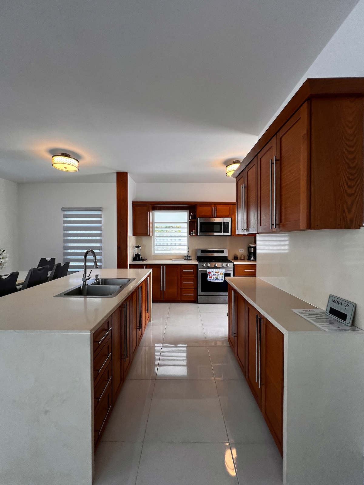 Welcome and relax in our brand new, stylish apartment, located in the Quiet Residential María, in the hart of Cabrera. Apartment is the top floor of the property. Kitchen is fully equipped. Full size Washer and Dryer in the Laundry Room. Two Bedrooms with queen size bed, Smart TV and Air Conditioner. Two full bath, one next to each bedroom. Dining, Kitchen and Living area has also an air conditioner. Seating space in the front deck and in the patio area. Free Private Parking off the street.