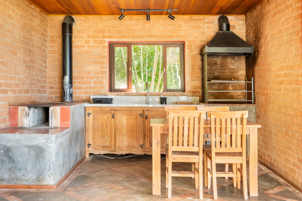 A 1.600 m de altitud, al pie de la Pedra do Forno, el lugar está casi completamente cubierto por bosque nativo. Con vistas a la Pedra do Bode, la casa está rodeada de araucarias por donde pasan armadillos, monos, pájaros y ciervos (posiblemente jabalíes). Ventanas y puertas centenarias, mucho vidrio, muebles de los años 50. Baño caliente, con calefacción a gas. Cocina gourmet con estufa de leña, parrilla, horno eléctrico, estufa moderna y lavavajillas. Wifi con buena velocidad.
