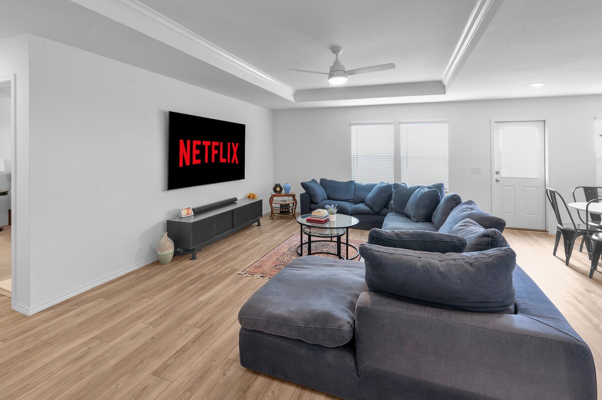 Escápate a un tranquilo alojamiento en el campo diseñado para ofrecer comodidad y espacio. Este espacioso alojamiento de 3 dormitorios y 2 baños se encuentra en 2 acres privados y duermen cómodamente 8 personas con 2 camas tamaño king y una queen. Disfruta de mañanas tranquilas en el porche, salas de estar interiores abiertas y atardeceres relajantes. El tercer dormitorio cuenta con un espacio de trabajo dedicado con un escritorio para sentarse y monitores duales de 27 pulgadas, ideal para profesionales y estancias entre semana a solo 2–3 minutos de la autopista 380.