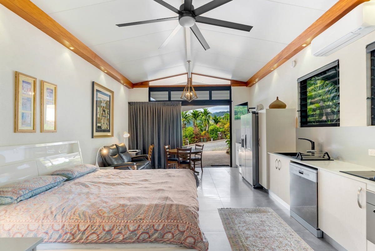 Esta casa de huéspedes Studio Suite ejecutiva, independiente y de planta abierta, está elegantemente decorada con comodidades de calidad. Piscina de inmersión con vistas. Excelente ubicación en Smithfield Heights, al norte de la ciudad de Cairns. Despiértate con el sonido de los pájaros. Fácil acceso a playas, Port Douglas, Daintree, Kuranda, Atherton y Mareeba Highlands. Camina hasta la universidad y las tiendas. La estancia incluye: Disposiciones de aperitivos de bienvenida. Se proporcionan productos básicos de hospitalidad de calidad, además de consumibles adicionales.