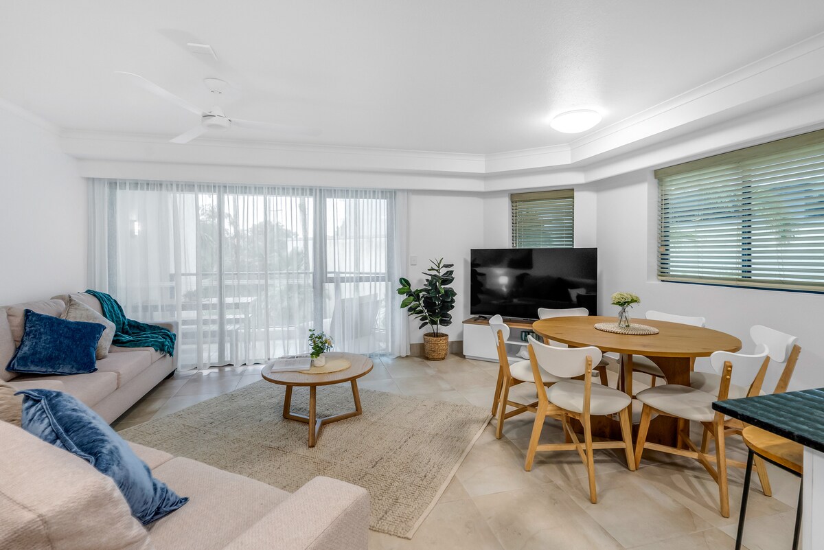 Bienvenido a tu tranquila escapada tropical, un refugio relajante diseñado para que familias, parejas y amigos se relajen con comodidad. Ubicado a lo largo de la icónica Cairns Esplanade, este apartamento de hermoso estilo combina el encanto costero con la comodidad diaria, creando el espacio perfecto para relajarse, reconectarse y disfrutar de todo lo que Cairns tiene para ofrecer. Con el paseo marítimo, parques infantiles y cafés justo a la vuelta de la esquina, es la base ideal para unas vacaciones relajadas que le encantarán a toda la familia.