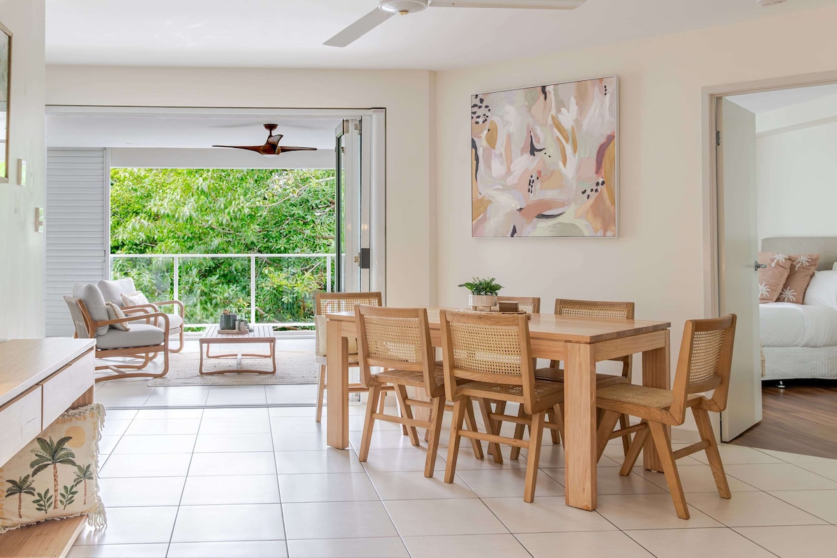 🌴Welcome to The Green Place, a peaceful 2-bedroom retreat with a private balcony overlooking the botanical gardens’ treetop canopy. Set within a tropical resort complex, this spacious apartment feels private, calm and made for slowing down. 🏡Enjoy free Wi-Fi, air-con, 4 pools, tennis court, workout space, full kitchen, laundry and undercover parking. Flexible bedding available: 🛏️ Bedroom: 1 king or 2 singles 🛏️ Second bedroom: 1 king