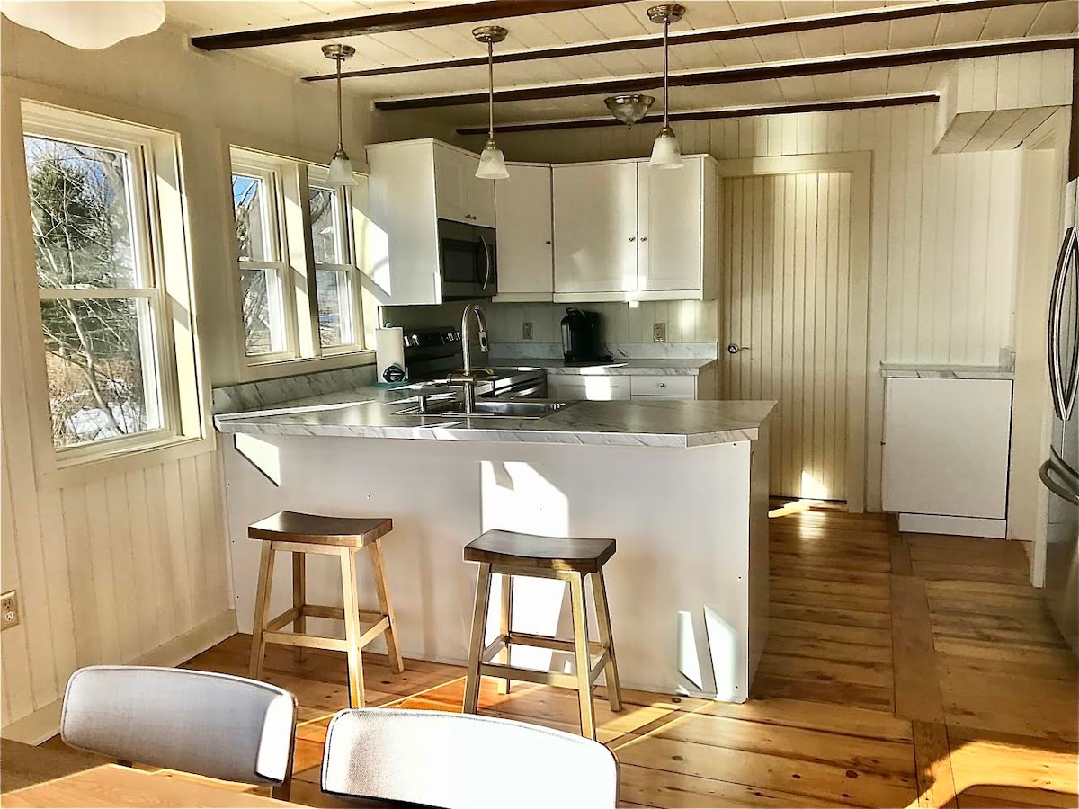 Relax with your family at our peaceful home just a few short steps from the beach, pond, and hiking trails of Roque Bluffs State Park. Hummingbird Hollow, aka Schoppee House, is a lovingly updated two bedroom cottage nestled between the ocean and state park land. Enjoy ocean views, salt air, and the sound of waves. A quick walk to the beach or pond, you’re not too far away to run back for lunch or take an afternoon nap. Also, the house is fully heated and is suitable for the cooler months!