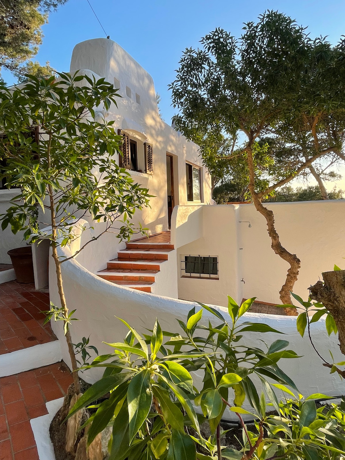 Encantadora villa de estilo boutique enclavada en un romántico jardín verde con árboles viejos y flores. Con sus terrazas, zonas de relax y una pequeña piscina privada encantadora, la propiedad ofrece un gran espacio y privacidad para 8 a 9 huéspedes. Los 4 dormitorios tienen aire acondicionado. Internet: ¡fibra óptica de alta velocidad! A 6 minutos a pie se llega a la hermosa playa de arena de Cala Llonga. Restaurantes, supermercados, tiendas y parada de taxis a solo 4 minutos a pie. A Ibiza Golf o Santa Eularia se tarda 5 minutos en coche; a la ciudad de Ibiza se tarda 12 minutos.