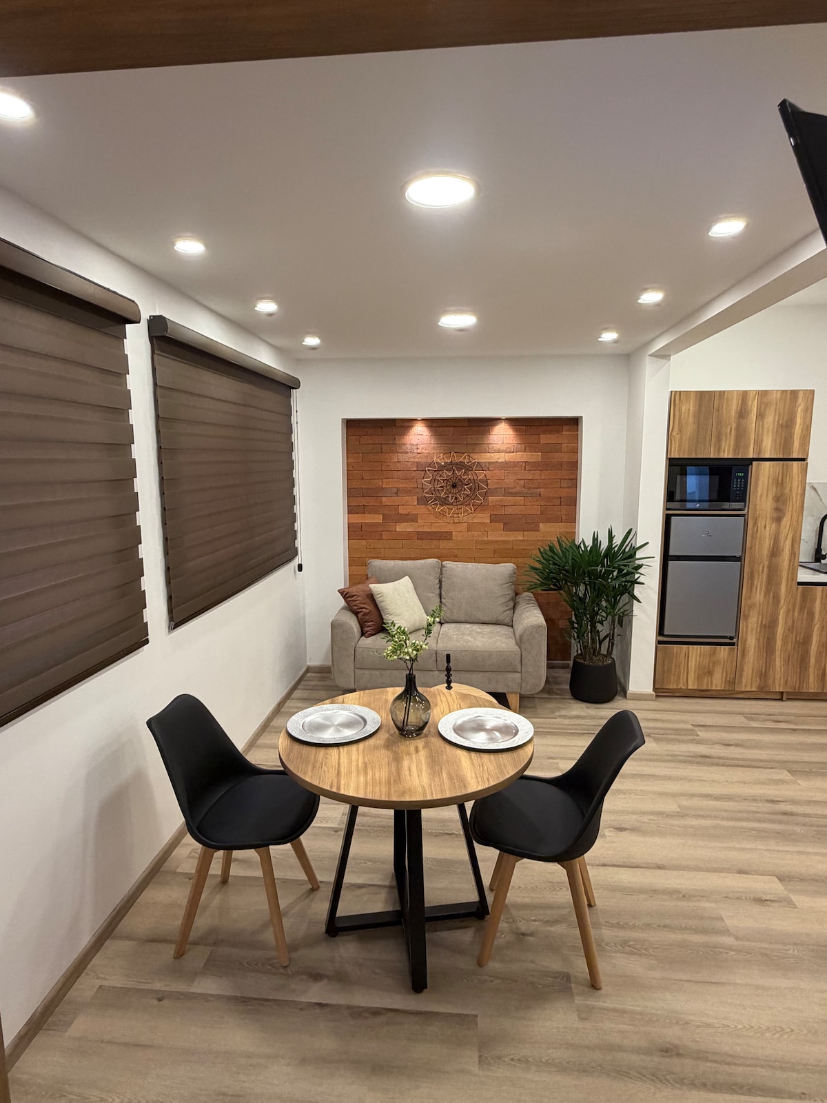 Haz que tu estadía en Cuenca sea inolvidable en la Suite Las Cúpulas, donde cada detalle está diseñado para tu relajación: 1 Sala de estar con TV, sofá cama, mesa de comedor y cocina equipada; 1 Terraza con vista al paisaje urbano; 1 Dormitorio con 2 camas matrimoniales; 1 Baño elegante con ducha. A solo 2,6 km del Aeropuerto Mariscal Lamar, es el refugio perfecto para descubrir la ciudad. ¡Reserva ahora y vive la magia de Cuenca!