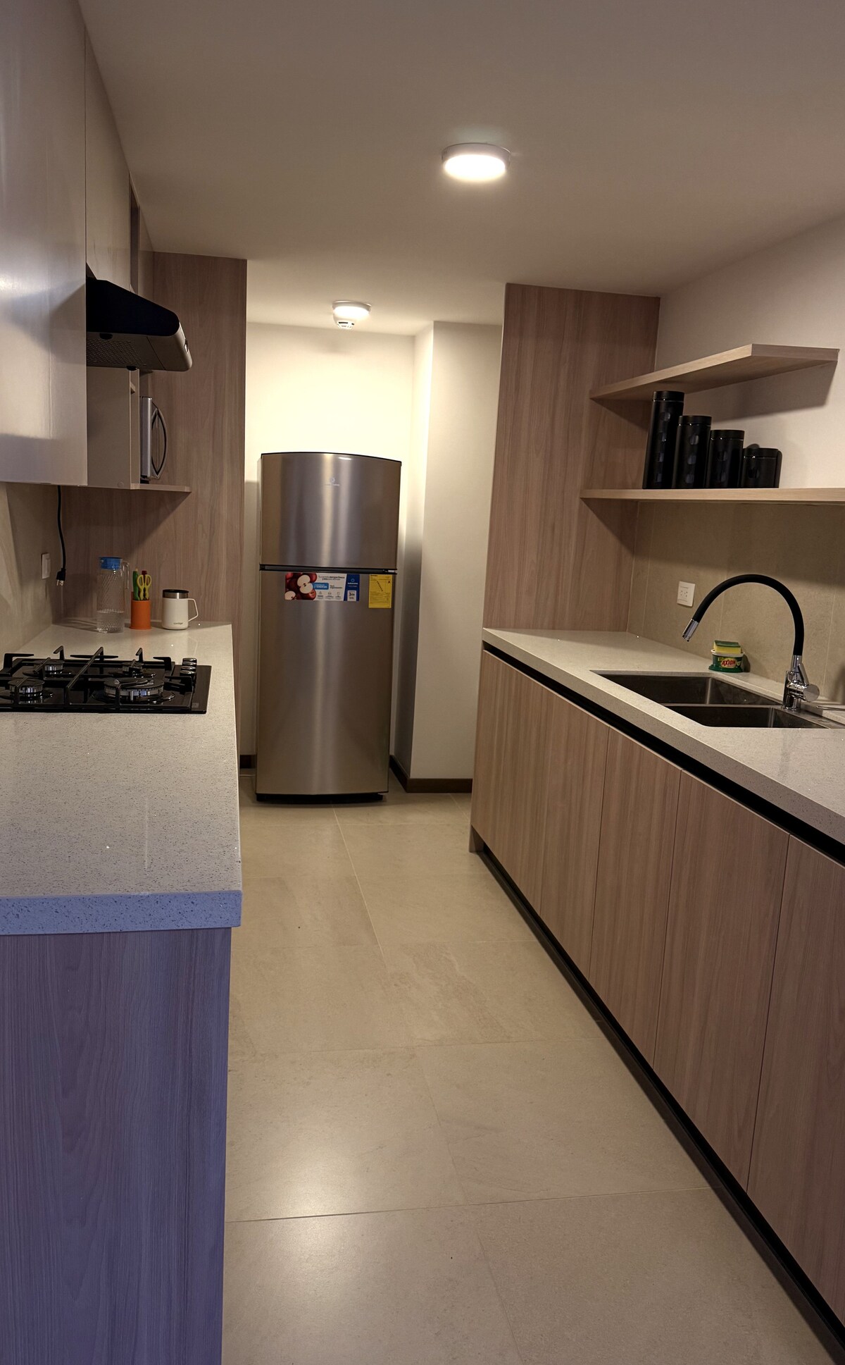 Este elegante alojamiento es ideal para noches de pareja, familia corta o estadías largas de trabajo. Contamos con jacuzzi dentro del departamento, chimenea de bioetanol y una sala con una pantalla de 85” para las mejores noches y experiencias inolvidables de sus vacaciones. Cama tamaño king y hermosos balcones. Cocina propia con todos los implementos necesarios. Cerca de lavanderías, tiendas, restaurantes. Parqueadero propio y cámaras con vista a la calle para su tranquilidad.
