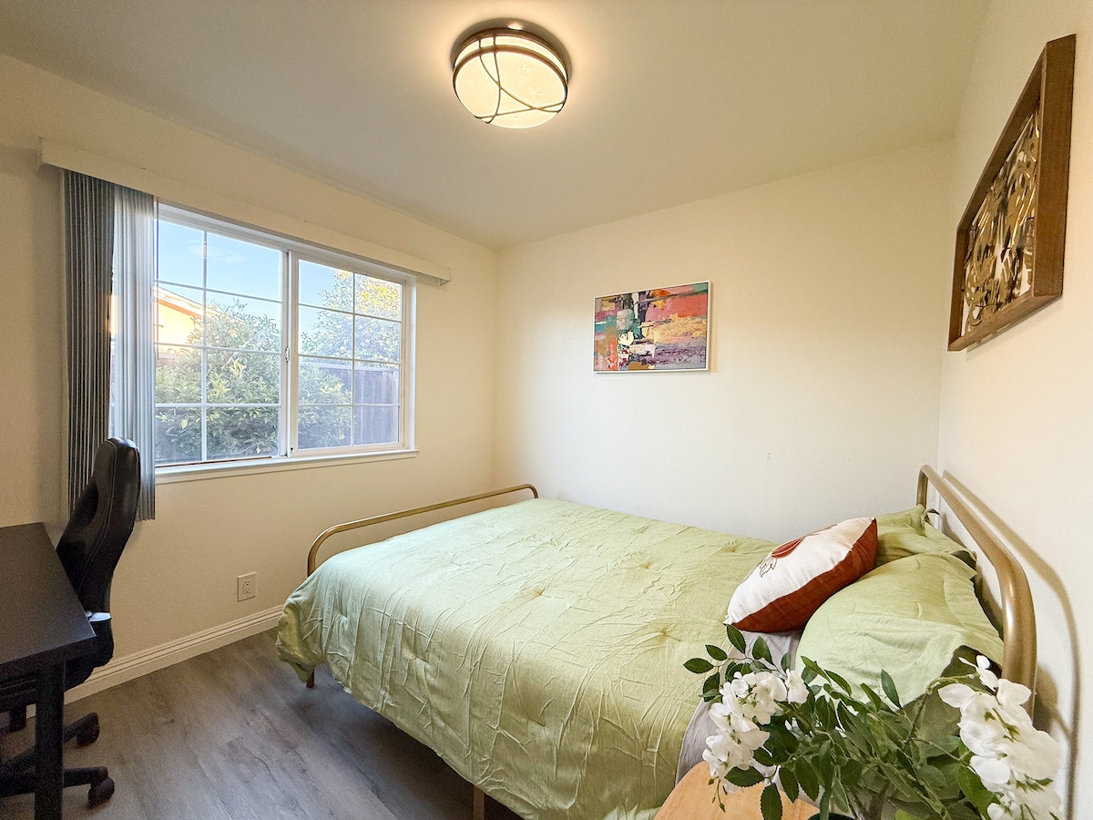 ¡Bienvenido a tu soleado escape de Silicon Valley a solo 7 minutos de SJC y cerca de los principales centros tecnológicos como Google y NVIDIA! Este acogedor y elegante refugio 2B2B está lleno de encanto, con toques artísticos y nuevos electrodomésticos. 2 camas tamaño queen + 1 futón tamaño queen, 2 baños completos y lavandería en la unidad lo hacen perfecto para 4 personas. Disfruta de servicios de estilo resort como piscina, jacuzzi, gimnasio y estacionamiento. Pasea por parques, senderos, tiendas y restaurantes cercanos. ¡Prepara un té, lee un libro o juega a un juego de mesa y siéntete como en casa!