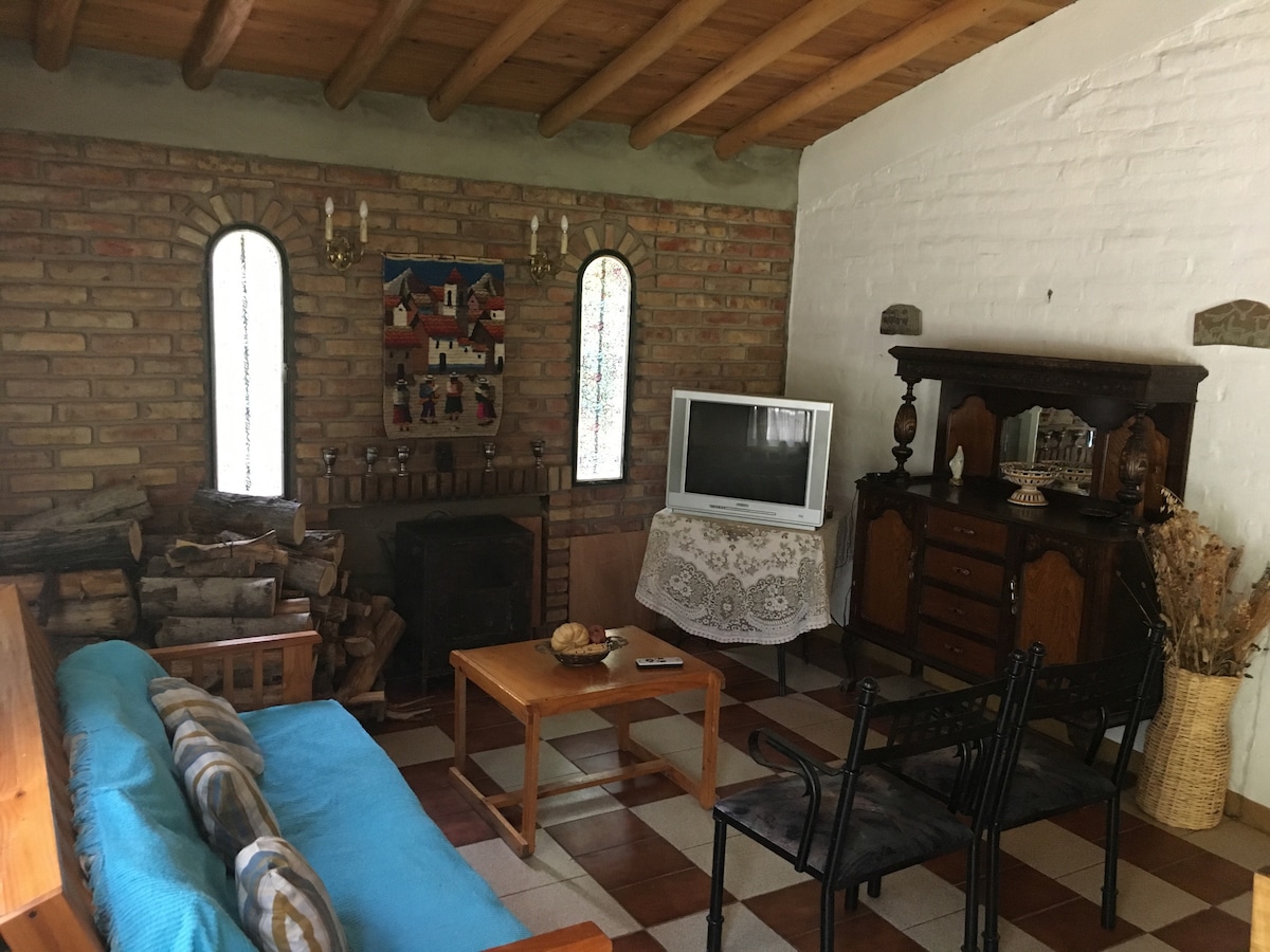 Calida cabaña para relajarte unos días en la montaña Ofrecemos check-in autónomo a partir de las 15 hs, sin restricciones en el horario de llegada. - Tiene dos habitaciones con estufas eléctricas, una con cama matrimonial y otra con dos camas de plaza y media. - Living Comedor con una salamandra; te proporcionamos la leña. - Cocina totalmente equipada. - WI-Fi, Smart TV y Direct TV. - Estacionamiento techado para tu comodidad. - Parrilla con vista al campo Las mascotas son bienvenidas 🐶🦴