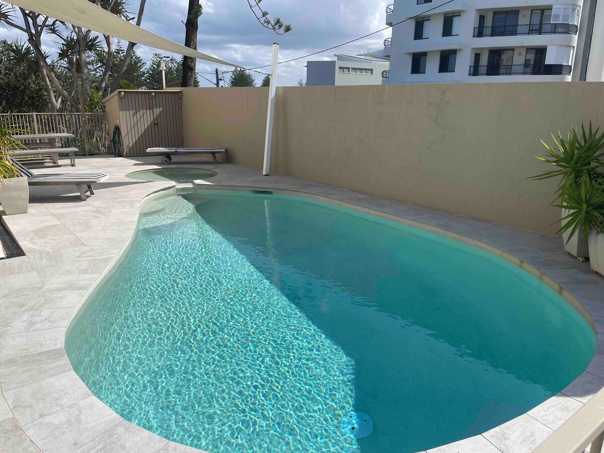 Primera línea de playa en Caloundra, unidad de 2 dormitorios con vistas al mar, piscina