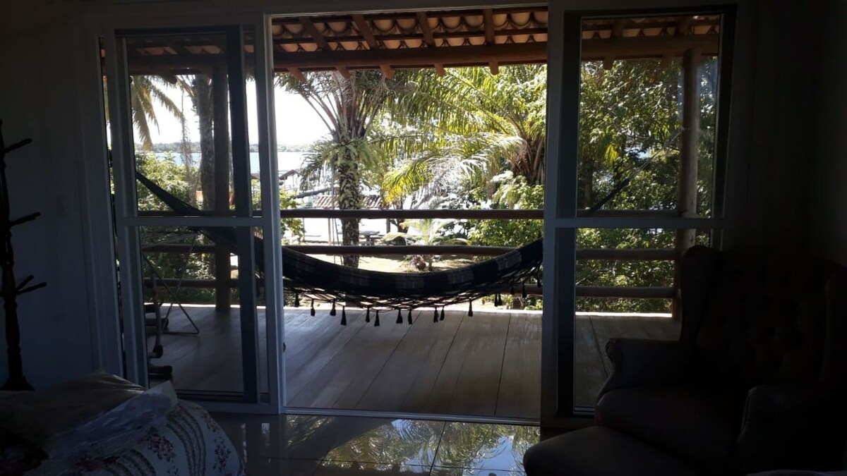Chalé Lua Branco (tema indígena) Rústico , creado para alojar a personas que quieren conectarse con la naturaleza. Un chalet de madera con una cama doble con ventilador. Ventana y puerta. Balcón con terraza y hamaca con vistas panorámicas del verde de las plantas autóctonas y el mar de la hermosa playa de los tres cocoteros 🌴 Si alojarse en esta cabaña es una energía única porque los pueblos indígenas pasan por aquí, siempre cuando salen del pueblo, haciendo ceremonias y bendiciendo el lugar. (El baño está separado)
