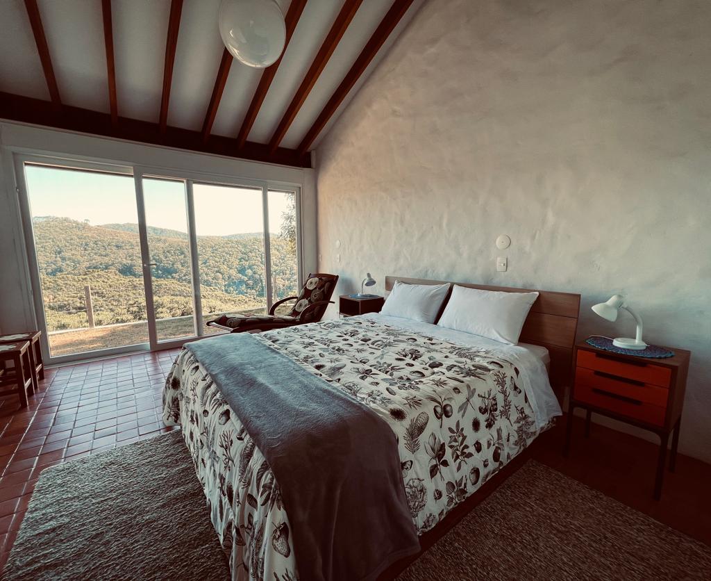 Nuestra propiedad está a solo 900 metros del centro de Gonçalves, en lo alto de la montaña, con una vista impresionante. Este espacio nació de un sueño: construir nuestra «pequeña casa en el campo», un refugio diseñado para nuestra futura jubilación. Mientras seguimos trabajando en São Paulo, decidimos abrir nuestras puertas y compartir este rincón especial con otros viajeros. Por lo tanto, también puedes disfrutar de la paz, la naturaleza y todo lo que la «Perla de Mantiqueira» tiene para ofrecer.