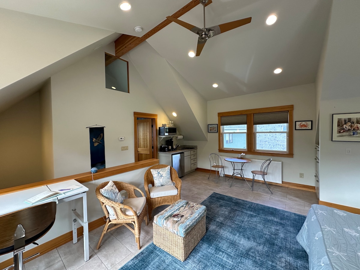 Ubicado al final de un tranquilo sendero, el Studio in the Woods es un encantador refugio independiente en una propiedad privada en una isla. El espacio es maravillosamente luminoso y ofrece un equilibrio perfecto entre la intimidad acogedora y la comodidad moderna. Disfrutará de una entrada privada y de total independencia, además de acceso a los hermosos paisajes de la casa principal, a la chimenea exterior y a un entorno exuberante. Ya sea para relajarse en el lugar, conducir hasta la playa o explorar las boutiques de Langley, esta es su escapada ideal a la isla.
