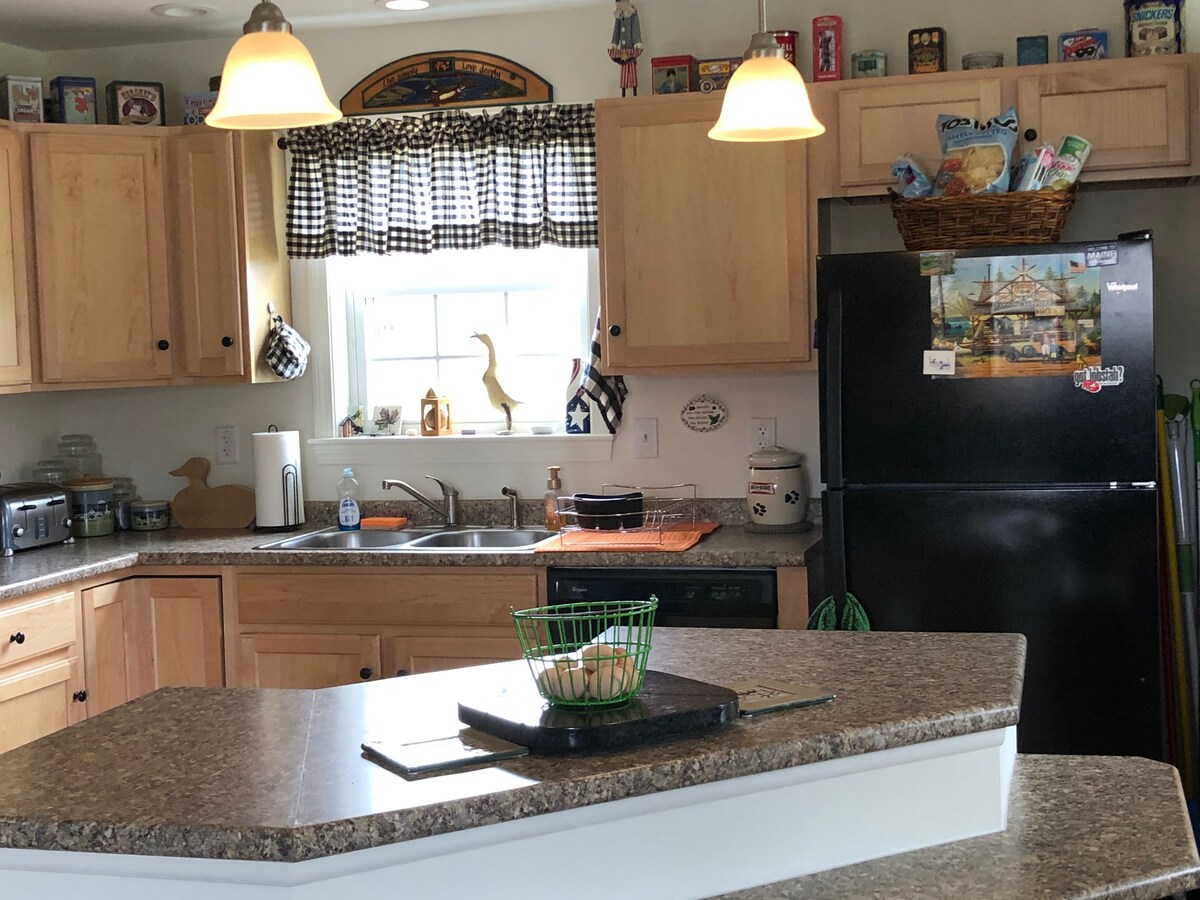 Main floor has living area, kitchen and dining area, 1 queen bed, with a daybed and trundler. Loft has 2 twin beds. The couch could be used as a bed, full bathroom. Has no kitchen sink but has a kitchen area with microwave, large air fry oven, fridge/freezer, toaster and coffee maker, iron/board. Also has TV, DVD/Blue ray player, Gas BBQ (May to November 1st.), as well as a picnic table, out door fire pit. For guest who are traveling by plane, towels are provided, upon request.