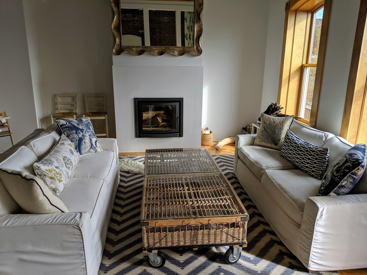 Ubicada en el histórico Knox Mill de Camden, The Optimist Guesthouse ofrece un refugio refinado en el corazón de la ciudad. Despiértate con el suave murmullo del río Megunticook que fluye, saboreando momentos de tranquilidad en tu balcón ventilado, perfecto para una reflexión tranquila o una cena íntima. Relájate en el cómodo gimnasio compartido, que incluye una sauna de infrarrojos. The Optimist Guesthouse, un refugio sofisticado, irradia calma y, sin embargo, está a solo unos pasos de todo lo que ofrece el bullicioso Camden.