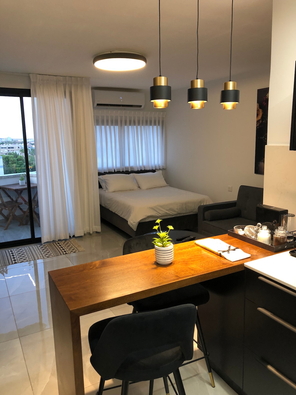 Esta unidad es un alojamiento moderno y tranquilo en el corazón de todo. La ubicación es muy conveniente si tienes previsto alojarte en la ciudad y disfrutar de las playas de Eilat. Este luminoso y cómodo 1 dormitorio y 1 baño te permitirá apreciar tu estancia y sentirte como en casa. Obtendrás un apartamento totalmente amueblado que incluye toallas, sábanas con TV de pantalla plana y acceso WiFi en cada dormitorio y sala. Diviértete con toda la familia en este elegante lugar.