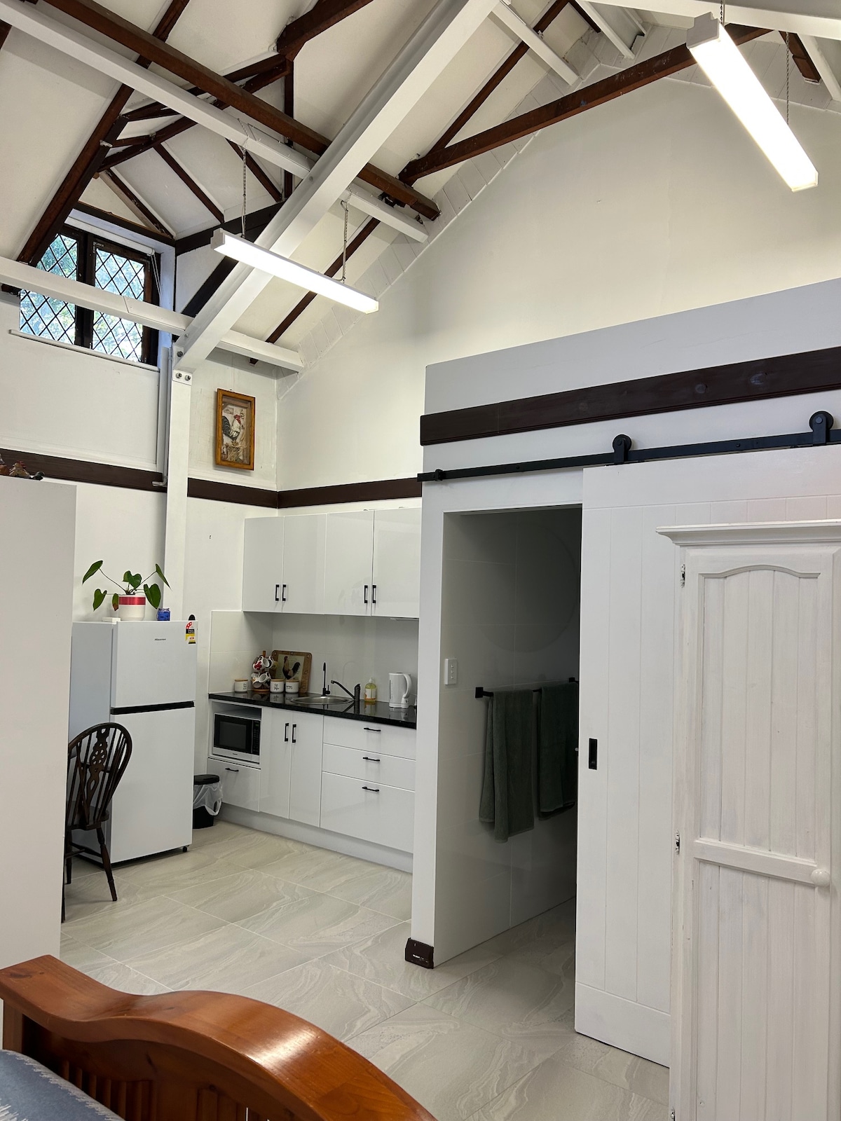 Disfruta del encanto del Monte Nasura en este acogedor estudio. El ambiente tranquilo del espacio es perfecto para los huéspedes que buscan relajarse y relajarse. Construido en una propiedad de estilo Tudor, el granero ofrece un refugio privado para parejas con baño propio, cocina y sala de estar. Con una acogedora cama tamaño queen, comodidades modernas como aire acondicionado y wifi, y una ubicación conveniente, este encantador refugio es ideal para una escapada pacífica.