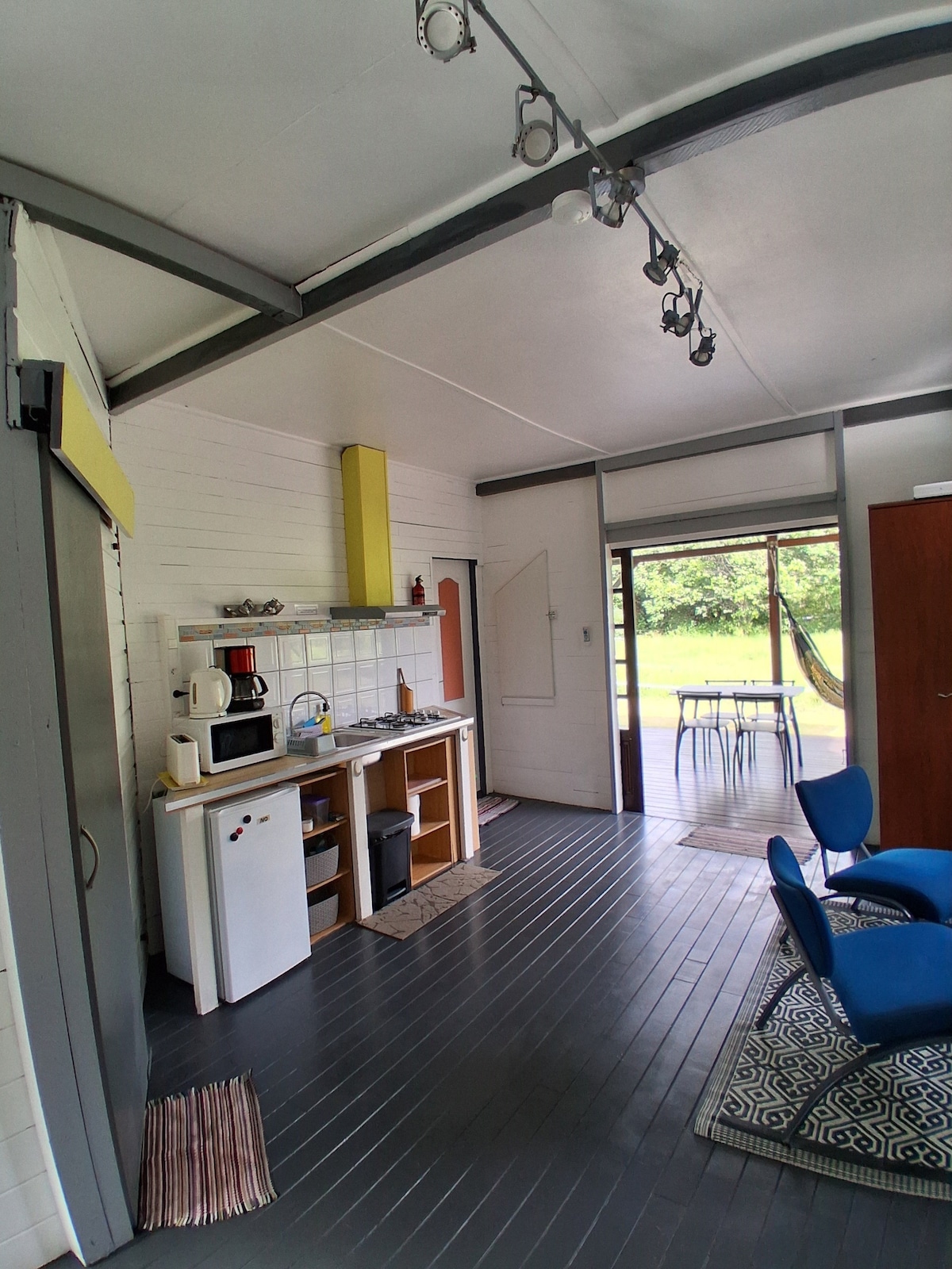 Este alojamiento está situado en el extremo del pueblo de Roura, desde la carretera de Kaw. En un entorno tranquilo, este lodge de 27 m² ofrece una cama de matrimonio y un sofá cama. Bonitas vistas al jardín y sus colibríes, así como al bosque. Una cocina equipada con gas, cafetera, vajilla y nevera. Cerca: río Oyack, panadería y tiendas de comestibles. Los paseos son posibles en los alrededores y puedo ofrecerle salidas al bosque de día y de noche.