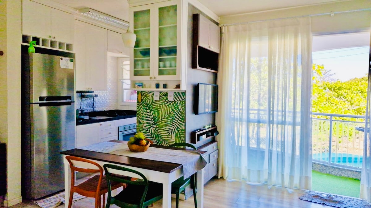 Acogedor apartamento, silencioso, amanece con el canto de los pájaros, con vistas abiertas, ubicado en la urbanización Novo Campeche, a 50 metros del sendero de la playa. Ambiente familiar con calles arboladas, estructuradas y seguridad privada. A pie, se puede ir al mercado, panadería, restaurante, farmacia, espacio de Food Truck, Casa di Praia Layback, Garden entre otros bares/baladines.