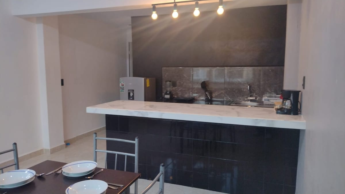Departamento amplio cómodo con 1 habitación y 2 camas matrimoniales. En la cocina encontraras : parrilla de inducción, freidora, licuadoras, comedor para 4 personas, y una pequeña estancia trasera ideal para relajarse al atardecer o tomar un café por la mañana. La ubicación es excelente, ya que está cerca de supermercados, restaurantes, y transporte público. Sin duda, este departamento es una opción perfecta para quienes buscan un lugar acogedor y bien equipado para su estancia.