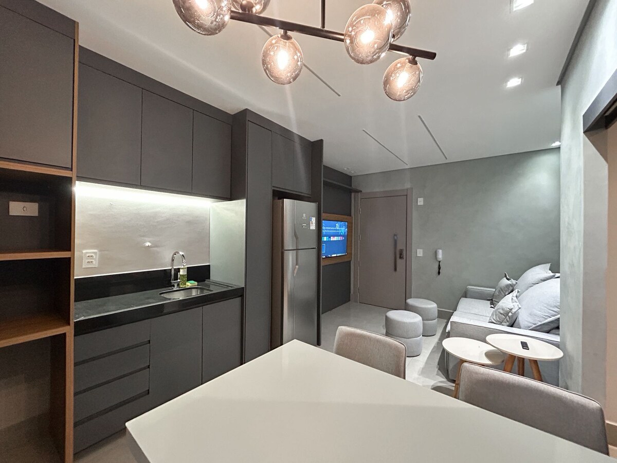Estudio en el edificio más grande de la capital, ¡ideal para ti y tu huésped! Completo, totalmente amueblado. Cerca de los mejores lugares de Campo Grande y a pocos minutos de Shopping CG. Cama tamaño queen, microondas, estufa de inducción, televisión, aire acondicionado en la sala de estar y el dormitorio. Disfruta de la piscina climatizada y también de la piscina infinita en el piso 20. Espacio ideal para aquellos que están de paso en Campo Grande o necesitan pasar unas semanas. ¡Bienvenido!
