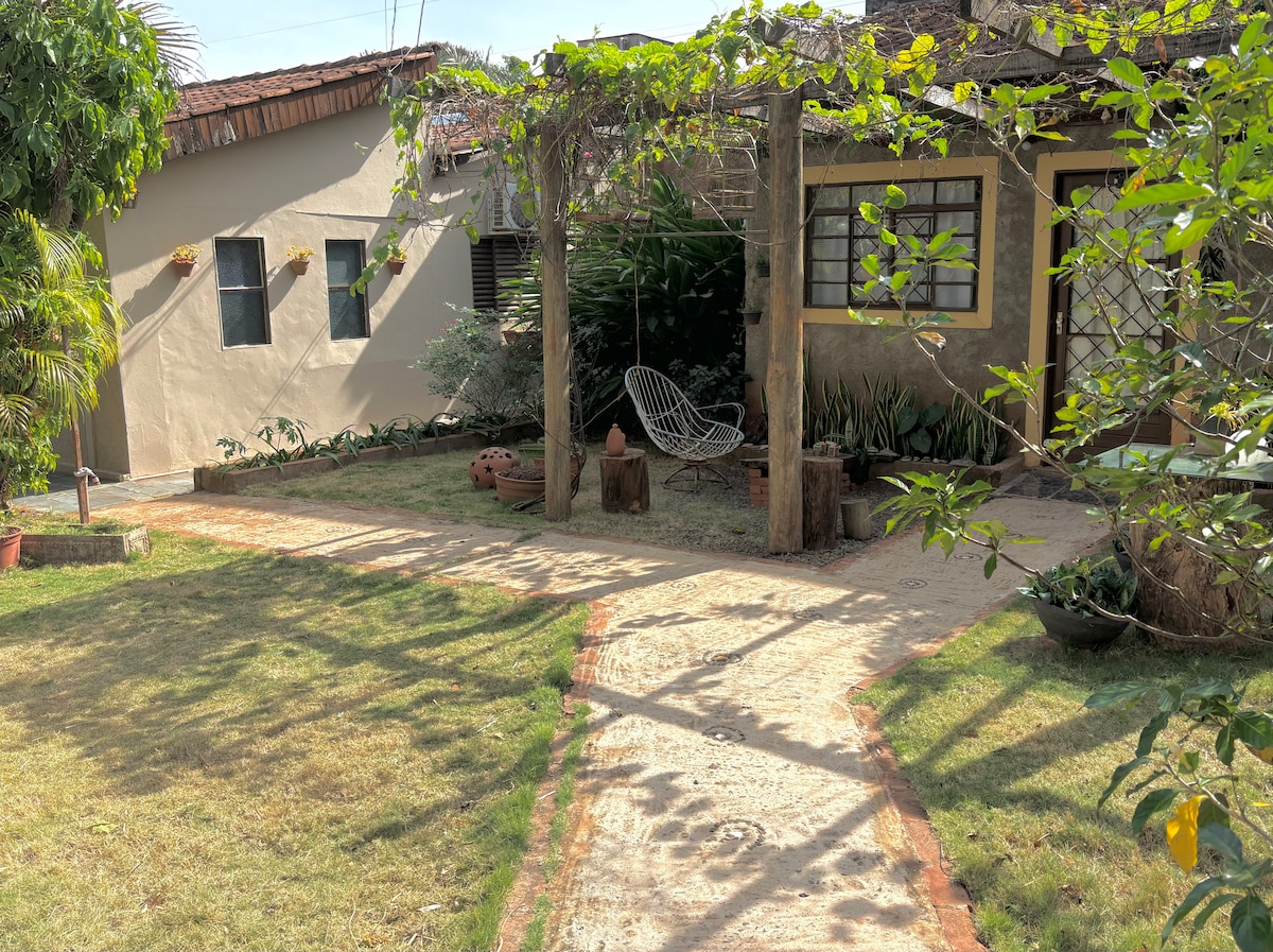 CASA ENTERA. Los anfitriones viven en el mismo patio, enfrente. El alojamiento es seguro/tranquilo. Está cerca del aeropuerto, a la salida de Bonito/Pantanal. Cerca del ejército y el IFMS. ¡Es fácil llegar al centro! No hay aire acondicionado, pero hay ventiladores. Tiene una concertina y cámaras, pero ninguna filma el alojamiento. La casa del anfitrión está en el mismo patio trasero, pero la cabaña está en la parte posterior, reservada. NO ACEPTA VISITAS ni MASCOTAS. ATENCIÓN: Es necesario incluir en la reserva a todas las personas que vayan a dormir.