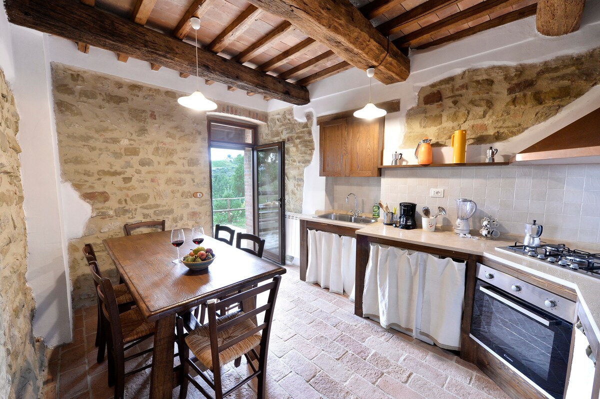 Siéntase cerca de la tierra en un edificio rústico en una granja toscana. Las antiguas paredes de piedra, los techos con vigas a la vista y los pisos de terracota son el telón de fondo de un apartamento característico con chimenea. Sumérgete en una piscina infinita para disfrutar de una vista única del paisaje circundante. Cena al aire libre, con el aire fresco acariciándote, siéntate y relájate admirando la puesta de sol bajo los antiguos cipreses.