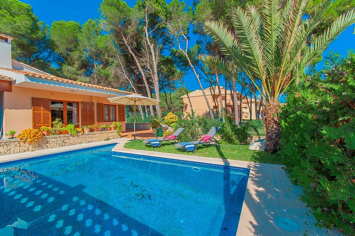 Precioso chalé muy cerca del mar. Situado en una reserva natural, muy tranquilo y muy cerca de los pueblos de Alcudia y Pollensa. Ideal para familias con y sin niños y para personas que disfruten de la isla en bicicleta. Dispone de todo lo necesario para hacer sus vacaciones agradables y cómodas... Aire Acondicionado, Barbacoa, piscina privada en un jardín muy amplio con tumbonas, Wifi, lavavajillas, microondas, plancha, secador y todo lo necesario para hacer su estancia lo más cómodo posible