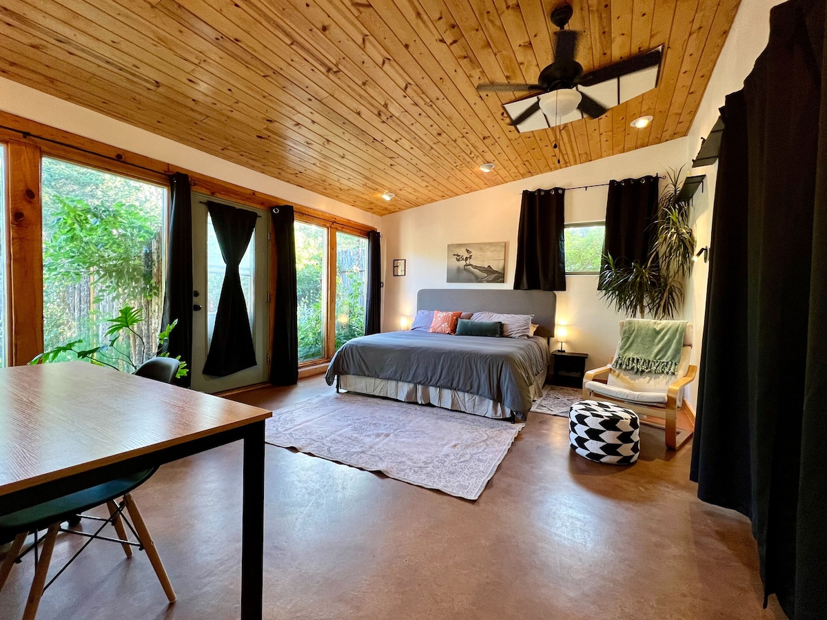 Quédate donde Gandalf y Frodo planearon sus próximas aventuras. Explora el hermoso mural de azulejos que representa la vida de un Ent (también conocido como Onodrim [anfitrión de árboles] por los elfos), toma asiento en la silla de Gandalf y ordena a su personal, toca el cristal de amatista incrustado en las paredes subterráneas y disfruta del silencio de estar dentro de la tierra. La encantadora suite Garden, a pocos pasos al otro lado del patio, incluye wifi, cocina y baño. ¡Relájate en otro mundo y disfruta de un descanso de la realidad! A 15 minutos de la plaza de Santa Fe.