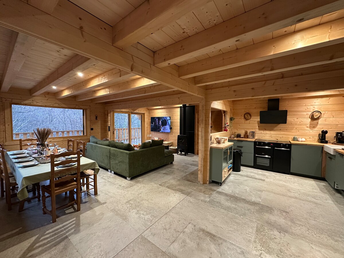 🌿 OFFREZ VOUS UNE PAUSE AU COEUR DE LA NATURE. Envie de déconnecter, de ralentir et de profiter du calme? Bienvenue dans cette maison en bois, nichée dans un écrin de verdure avec une vue apaisante. Ici, le temps s'arrête : petits-déjeuner en terrasse, moments de détente au soleil, soirées chaleureuses...tout est réuni pour se ressourcer. Parfait pour un couple, une petite famille ou 4 adultes pour un séjour au calme et proche des principaux sites et activités de la région.