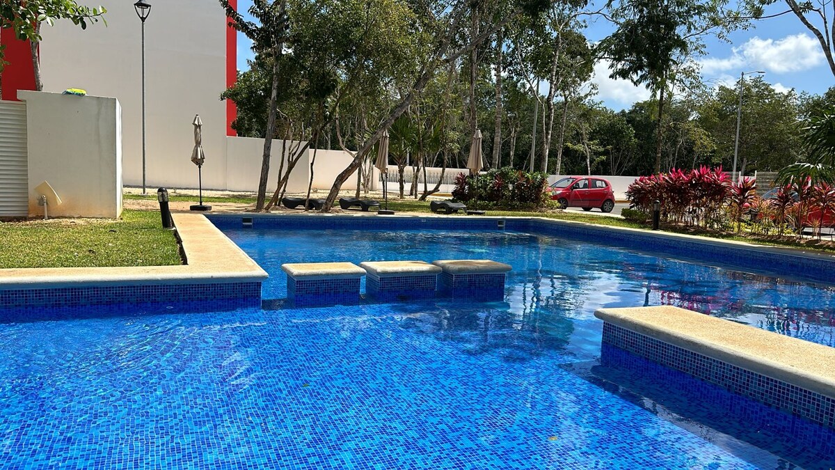 ⭐Departamento completo con baño propio. Disfruta de despertar con el canto de las aves, el silencio y la tranquilidad de la zona; el departamento se encuentra cerca del mercado 28 (centro turístico de Cancún), 🏖️a 20 minutos de las hermosas playas🌴 Caminar en la zona a cualquier hora del día/noche es muy seguro, el área está rodeada de parques y arboles. 🚍A unos minutos caminando está la parada (central ADO) a las playas de Cancún, al bus para ferry Isla Mujeres, Tulum, etc.