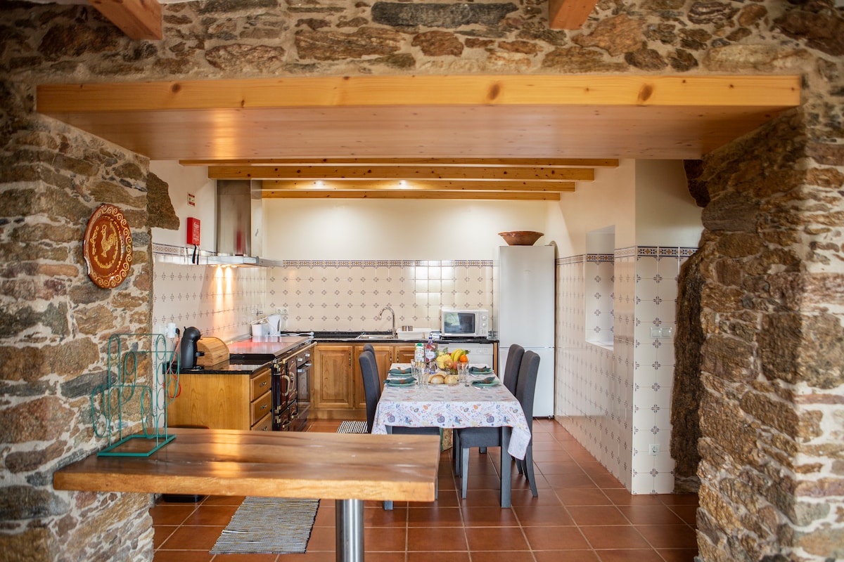 Esta é uma casa acolhedora, localizada em plena Serra D'arga, local onde reina a tranquilidade, onde se convive com os animais, onde podemos visitar as lagoas, as cascatas, onde podemos descobrir locais incríveis, local onde as montanhas se misturam com o mar, onde se respira um ar diferente, aqui podemos ouvir a natureza a falar. Localizada a 30 minutos de Viana do Castelo, Ponte de Lima ou Caminha. É o local perfeito para umas férias com os amigos ou a família.