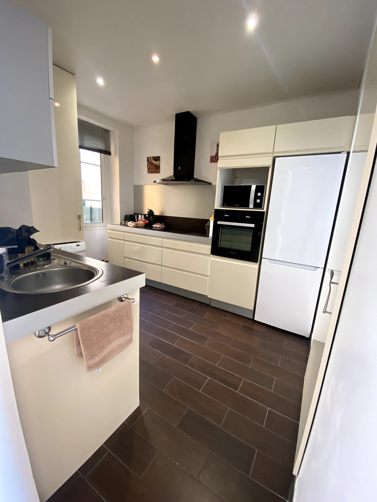 ¡Apartamento totalmente renovado en el corazón de la ciudad! Sin embargo, muy tranquilo. 1 dormitorio + 1 sofá cama en la sala de estar. Los baños son individuales. Aparcamiento gratuito y seguro. Todas las comodidades: lavavajillas, lavadora, secador de pelo, plancha (y tabla), cafetera tradicional + Nespresso, tostadora, hervidor de agua, etc. Wifi y aire acondicionado. Balcón para comer al aire libre (2 personas) y una tumbona para poner delante de la ventana: ¡felicidad! Vistas al centro de la ciudad y a las montañas circundantes. Mucha luz natural.