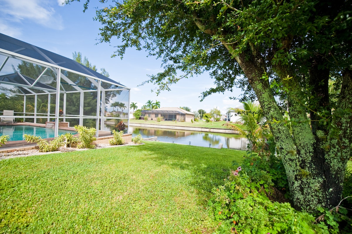 ¡Bienvenido a Sunset Heaven en Cape Coral, Florida! ¡Queremos ser tus anfitriones! - Casa de 2000 pies cuadrados en la planta baja - Diseñado para 12 huéspedes. - La mejor ubicación - Piscina privada - 6 televisores inteligentes. - WIFI RÁPIDO. - Cocina totalmente equipada. - Espacio de trabajo dedicado - Estacionamiento GRATUITO en el lugar. - Barbacoa - Comedor al aire libre - Lavadora y secadora. - Apto para niños. - Juegos familiares - Auto registro de entrada. - Teatro de casas.