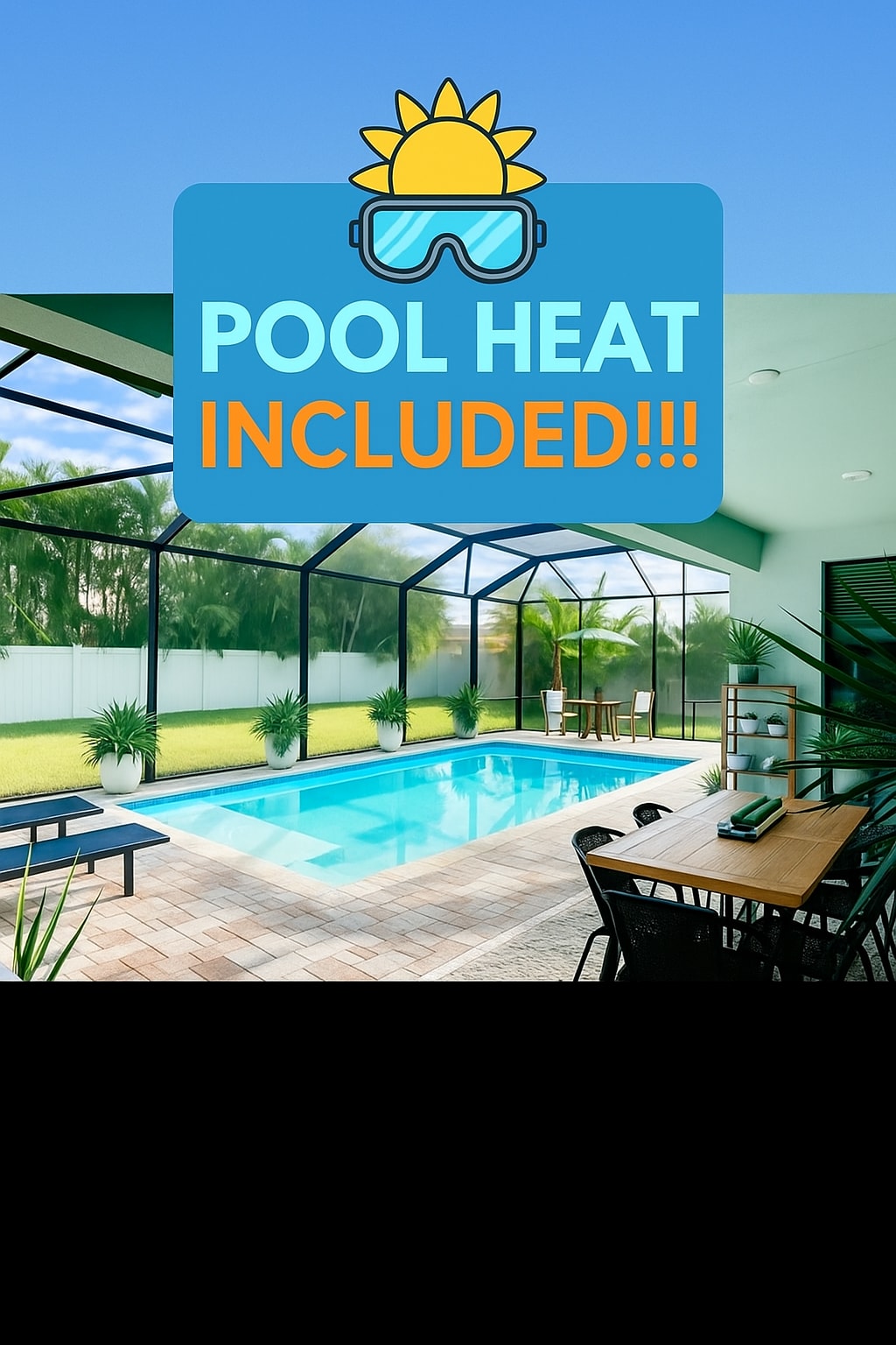 Relax with the whole family at this peaceful place to stay. FULLY Furnished Home. Your beautiful Heated pool has a sun shelf with a bubbler, and LED light.Full Electricity is included in Airbnb price displayed for setting of 84deg. 3 bed+den, 2 baths, and a 3 car garage. Impact glass doors and windows. 8 ft doors! In the master bedroom you will find two walk-in closets, dual sinks, a separate tub and rain shower head. Room for kids to play or pets to roam! BBQ Grill w searing station included.