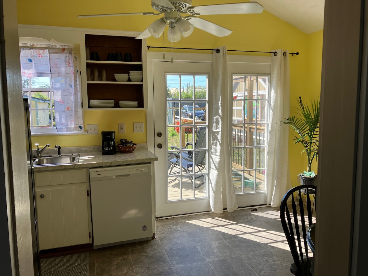¡Tómate un descanso y relájate en este acogedor bungalow de playa! El Beach Bungalow está decorado con cálidos colores tropicales y toques de una decoración de surf. Esta es la escapada perfecta para pasar un buen rato en familia, con amigos o simplemente para escapar de las multitudes. Sigue el sonido de las olas rompiendo suavemente en la costa y en pocos minutos estarás sumergiendo los dedos de los pies en la arena. Un lote esquinero privado con fácil acceso al aparcamiento. Además, es el lugar perfecto para pasar el rato en el porche con mosquitera o relajarte en la hamaca a la sombra.