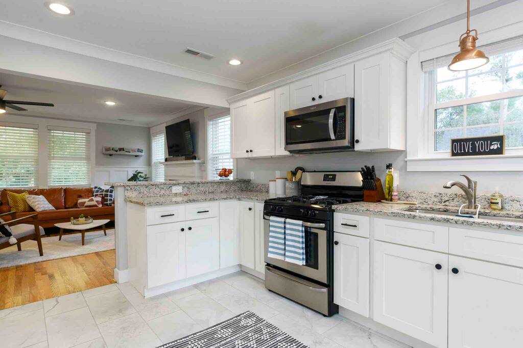 ¡Estoy muy emocionado de compartir esta pequeña joya contigo! ¡Ha sido completamente renovada y tiene todas las comodidades modernas mientras mantiene su encanto y carácter originales de 1922! Algunos aspectos destacados: nueva cocina completamente surtida, nuevos electrodomésticos de acero inoxidable, televisor inteligente de 65pulgadas, altavoz Sonos, colchones de espuma viscoelástica en todas las habitaciones, sábanas de alta calidad en toda la casa, dormitorio tamaño king en suite con baño totalmente remodelado, porches delanteros y traseros cubiertos, gran patio vallado, parrilla de carbón vegetal, chimenea