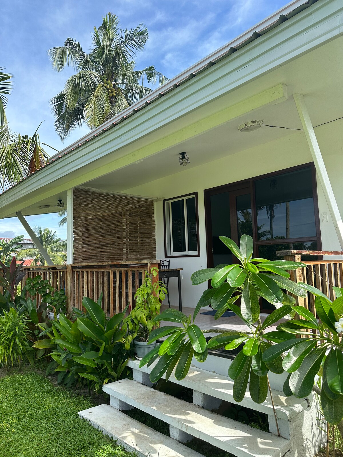 Te damos la bienvenida a General Luna, Siargao . ¡Ofrecemos una escapada tranquila a la vez que estamos a 5 minutos en coche de la vibrante energía de los clubes de playa y restaurantes en la carretera turística principal! El bungalow tiene terraza, cama tamaño king, baño privado, gabinetes, televisión, terraza, aire acondicionado y artículos esenciales de inodoro. Tenemos un generador para apagones de energía que permiten que el huésped disfrute de la presión del agua, las luces y los enchufes. Es posible que el calentador de agua no esté disponible en estas circunstancias excepcionales