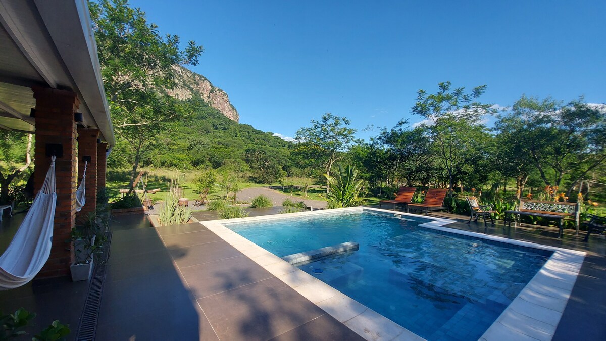 Here you can relax in peace or have a lavish party, just as you like! With every comfort, in the middle of nature and yet close to San Bernardino and just a stone's throw from Caacupé with its basilica. Enjoy the unobstructed view of the valley of Ypacaraí up to the skyline of the capital Asunción. In the pool or on the terrace you can enjoy the day and then the romantic sunset. Or would you rather have a glass of champagne in the indoor whirlpool?