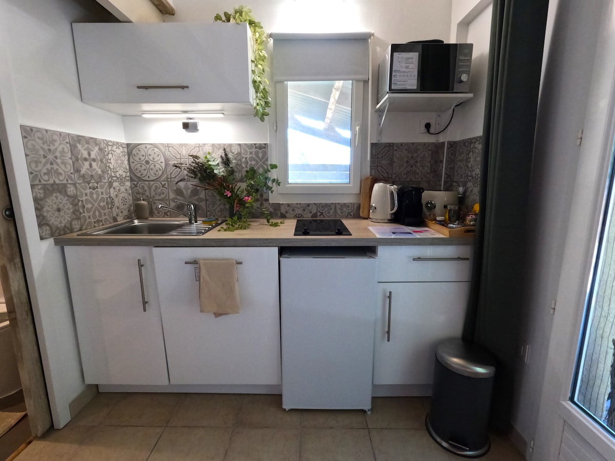 En Clos des Perles en Tourtour, Encantador estudio con todas las comodidades y opción de balneoterapia en una habitación independiente con acceso directo desde el alojamiento. Recuerde reservar su turno de hidromasaje de 2 horas y media, 60 euros a pagar en el lugar para dos personas. Tranquilo y con una ubicación ideal en este hermoso pueblo clasificado del Alto Var, pueblo en el cielo con unas vistas sublimes. Puede disfrutar de la piscina climatizada (según la temporada) con desbordamientos, pequeños momentos de juegos (petanca, ping-pong)