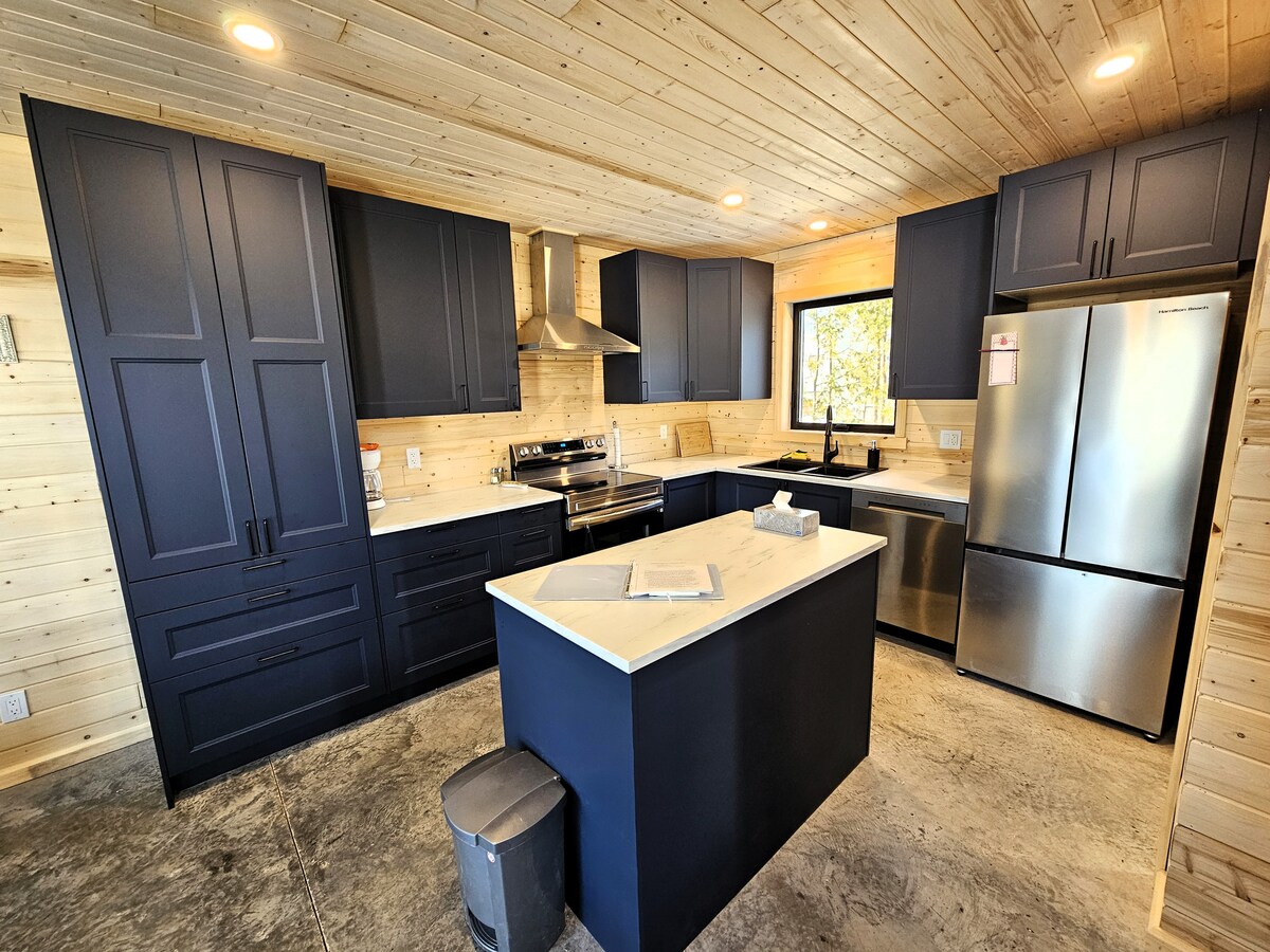 Escápate a nuestro acogedor Chalet Bleu, a solo unos pasos de la playa. De nueva construcción (2024), combina la comodidad moderna con el encanto rústico, con cálidos interiores de pino, una elegante chimenea eléctrica y pisos de hormigón climatizados. Disfruta de la vista al mar, la sala de estar abierta, una cocina totalmente equipada, wifi rápido y TV para noches tranquilas. Diseñado cuidadosamente para relajarse, es el lugar perfecto para relajarse y recargar energías junto a la costa.