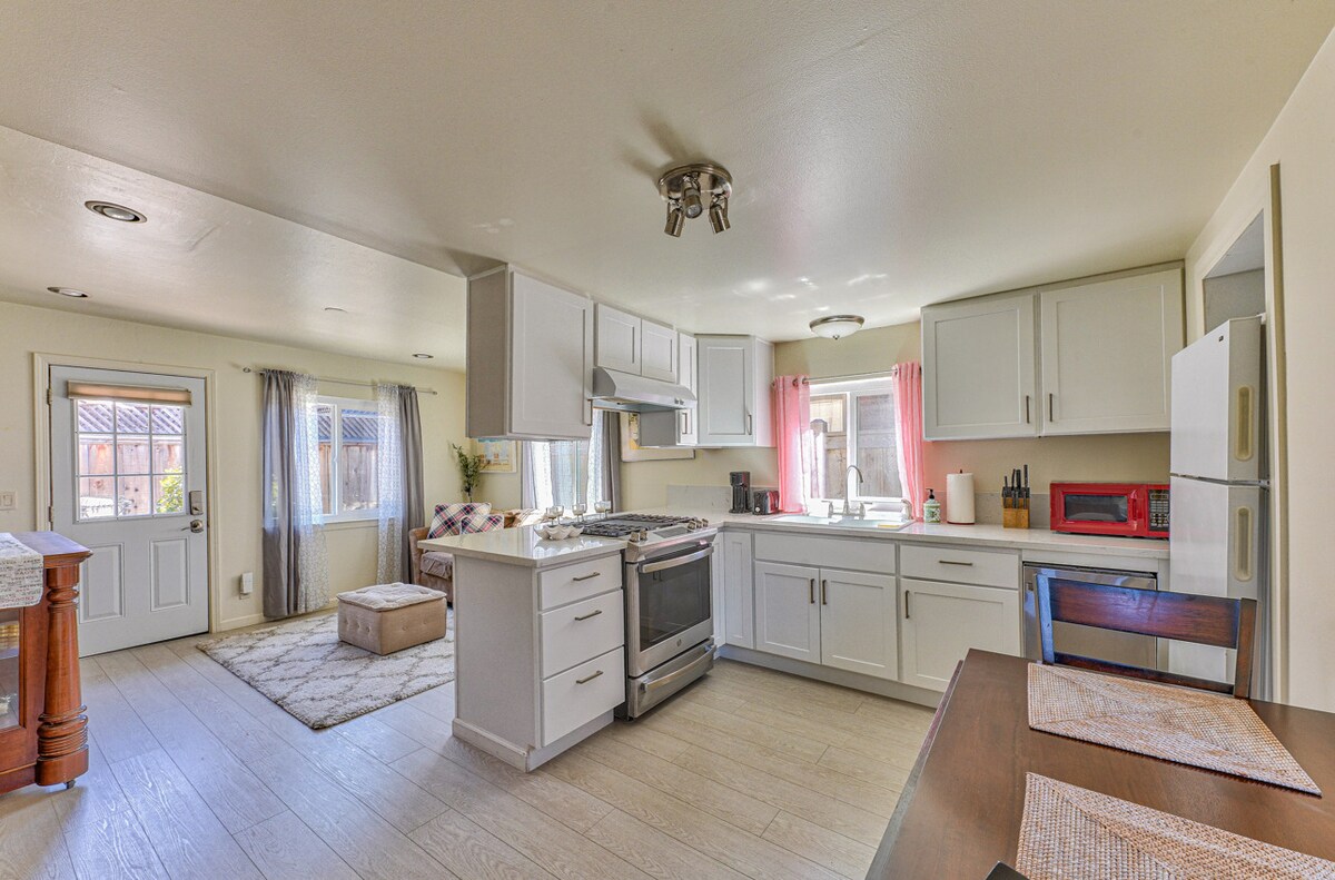 Acogedora cabaña junto al mar en un barrio acogedor de Seaside. ¡Nuestra porción junto al mar está cerca de la playa, el recinto ferial de Monterrey, Laguna Seca Raceway y mucho más! Disfruta de una estancia tranquila en la bahía de Monterrey con un camino de entrada privado y un área de patio, así como una lavandería completa y una cocina totalmente equipada. ¡La alfombra nueva y un baño recientemente renovado son una ventaja adicional! A poca distancia a pie de tiendas de comestibles, Walgreens y restaurantes locales. ¡Retiro perfecto para una pareja o solo para ti!