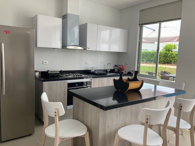 Relájate con toda la familia o amigos en este agradable lugar para quedarse. Casa de campo en conjunto residencial para 8 personas, dotada con piscina privada, aire acondicionado en toda la casa, internet, plataformas streaming de TV, cocina integral incluido elementos de cocina y vajilla, lavadora y zona BBQ con Bolirana.