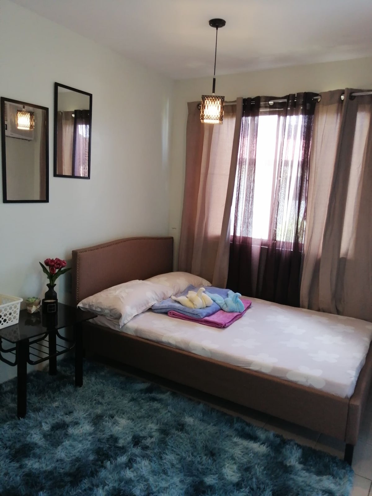 Ven y alójate en nuestro relajante dormitorio amueblado con cama de matrimonio, con ventilador y cama cómoda. Situado a las afueras de la autopista Emilio Aguinaldo de Robinson en Silang, Cavite. A 20 minutos en coche del corazón de Tagaytay y Dasmarinas. Está cerca cuando quieres ir al lago Taal, Nasugbu y otras ciudades cercanas de Batangas. A los huéspedes se les proporciona agua filtrada gratuita y desayuno de cortesía. Aseguramos a los huéspedes una estancia cómoda y confortable en nuestro alojamiento. Esperamos poder hospedarte.
