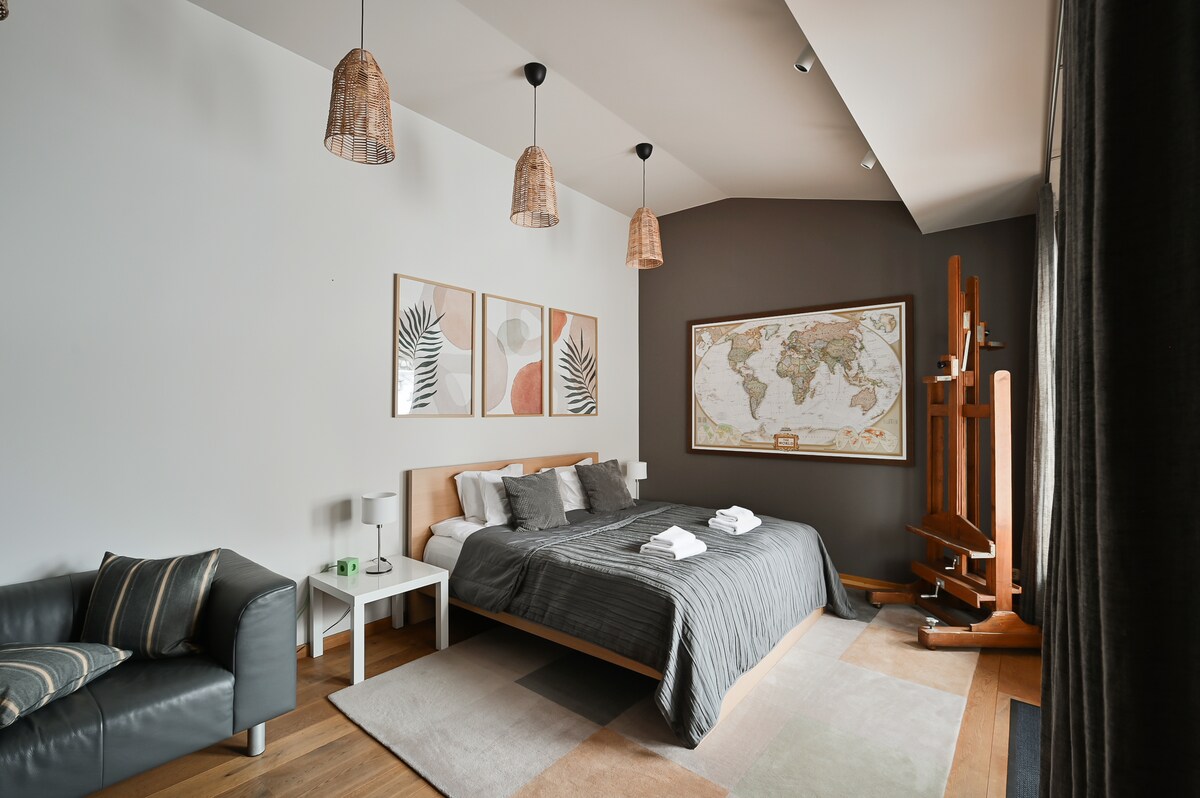 Amplio apartamento contemporáneo de dos plantas en el último piso con techos altos, mucha luz natural y una gran terraza. El apartamento está situado en el barrio Art Nouveau, un barrio prestigioso y acomodado a solo 10 minutos a pie del casco antiguo, conocido por su arquitectura y su selección de restaurantes y bares. Te encantará el espacio del apartamento, el ambiente relajante, la gran terraza, la cocina totalmente equipada, el comedor y la sala de estar. Perfecto para relajarse después de explorar la ciudad.