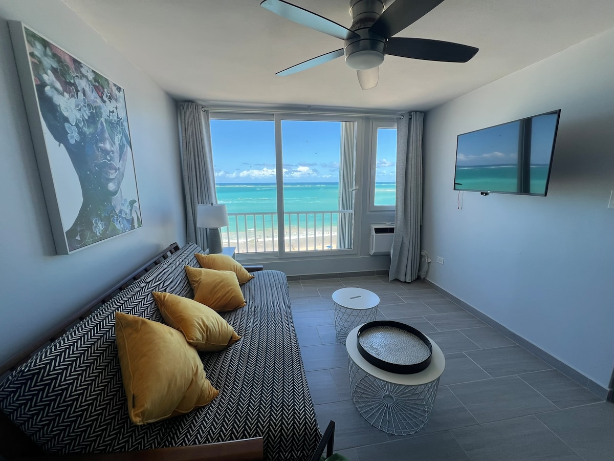 Si planeas quedarte en la playa más hermosa del área metropolitana de San Juan, ¡encontraste el lugar correcto! Ubicado en una de las mejores franjas de PR, tendrá aguas turquesas por un lado y una franja de 2 millas para explorar por el otro. ¡Baja en ascensor! Sin cargos ocultos. A 5 minutos del aeropuerto, a 10 minutos o menos de Old SJ, puertos de cruceros, centro de SJ, Santurce, Condado, etc. y a 45 minutos en auto de El Yunque. Estacionamiento gratuito, aire acondicionado, agua caliente, equipo de playa, SmartTV, Wi-Fi, cargadores solares.